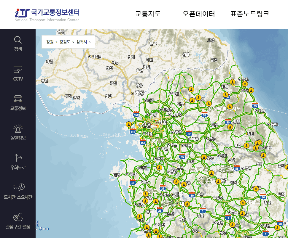 - ITS 국가교통정보센터 : 주요 도로 교통량, 속도, 사고 발생 여부까지 종합적으로 제공해줍니다.